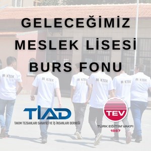 Üretimin geleceği olan meslek liseli öğrencilere destek vermek için, tüm sanayi kuruluşlarını bu fona destek olmaya davet ediyoruz.Takım Tezgahları Sanayici ve İş İnsanları Derneği (TİAD) olarak, geleceğin güçlü Türkiye'si için üretime, üretim için ise mesleğinde uzmanlaşmış, yenilikçi, girişimci, üretken, ekonomiye değer katan ve yarınlara umutla bakan gençlerimize inanıyoruz.